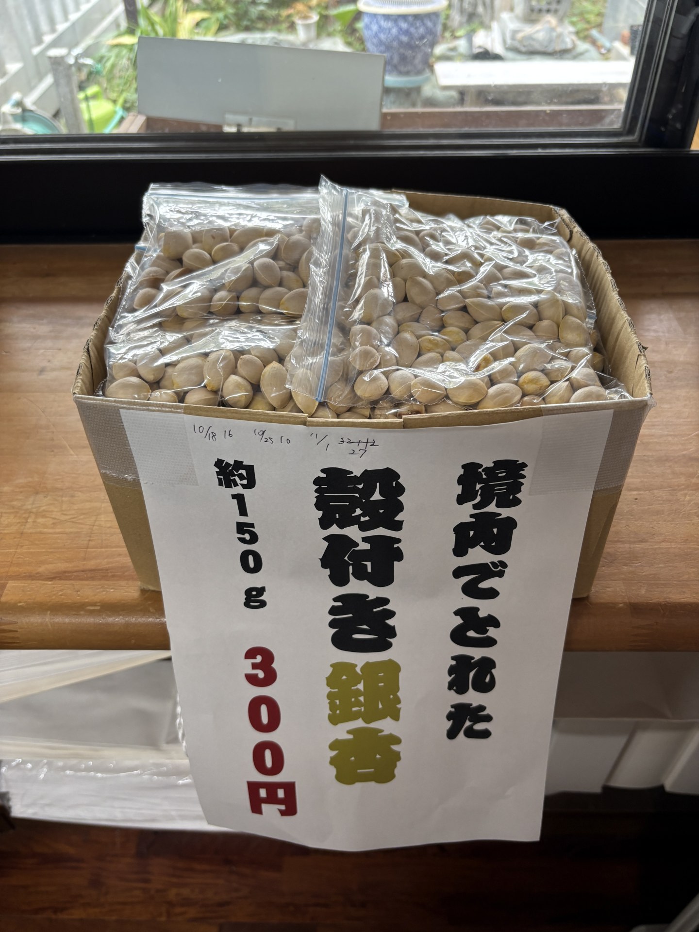 境内でとれたギンナン販売中 iPhone 15 5.96 mm ISO125 1/50 sec f/1.6