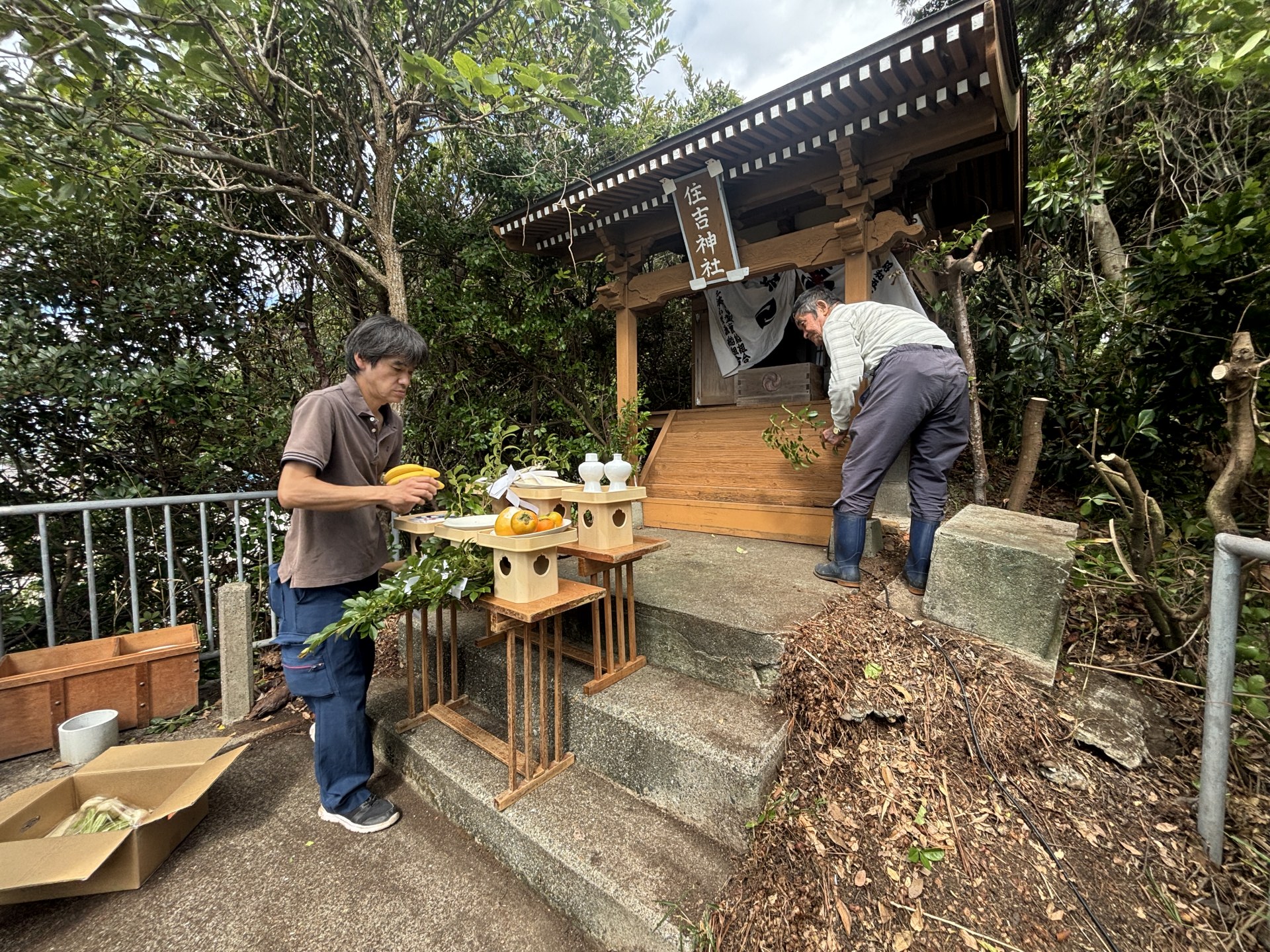 午前中、実入区に鎮座する住吉神社の祭礼を一人で奉仕する。