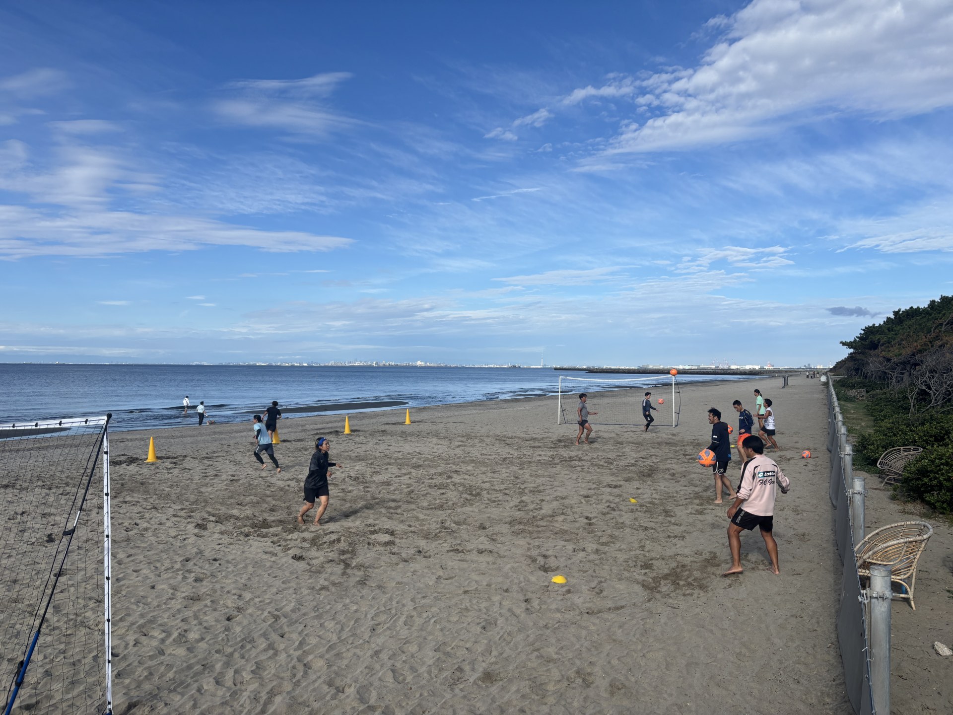 早起きし、朝6時に出発して途中で参加選手をピックアップしつつ、稲毛海岸へ。 朝8時から、マルコたち、辻堂鯱倶楽部の面々が行っているトレーニングに、我々ゾンネ有志も混ぜていただくことになった。 心配されていたお天気も、まさかの青空。 心地よい秋晴れの下、2時間にわたって、ハイレベルながらも楽しい時間だった。 ゾンネからは女子選手6人が参加。結果的には鯱倶楽部よりも大人数になったわけだが(笑)、先日のクイーンズカップ3位に納得することなく、さらなる高みを見据えて、12月7日のプレーオフを目指してのトレーニングにもなった。 いまや、日本のトップ2と言って良い、関東の東京ヴェルディプライアナBS、レーヴェ横浜フラウになんとか勝ち切り、初優勝を手にしたい。決して不可能な目標ではない。 選手たちのモチベーションも高まってきているし、とても楽しみだ。