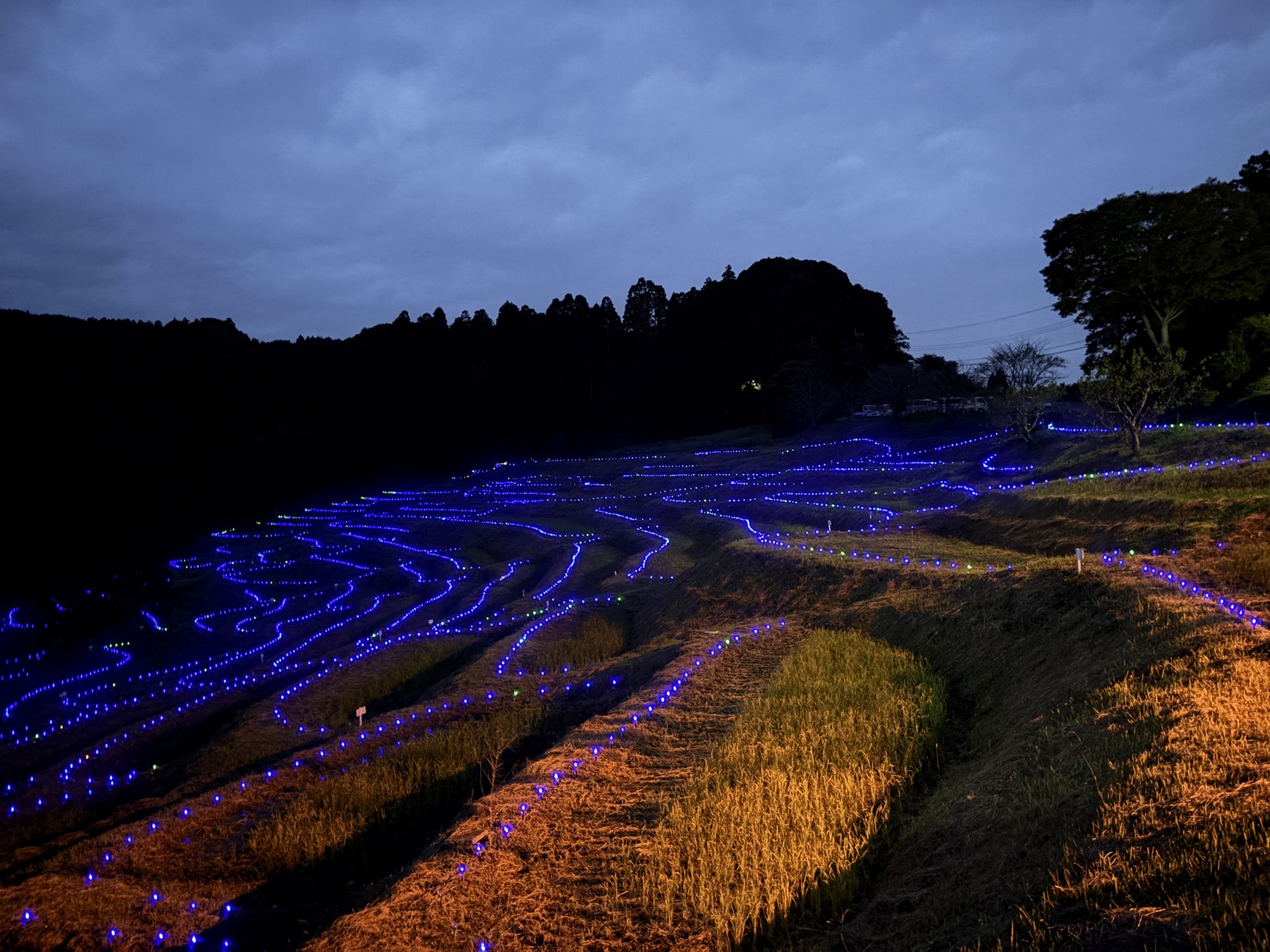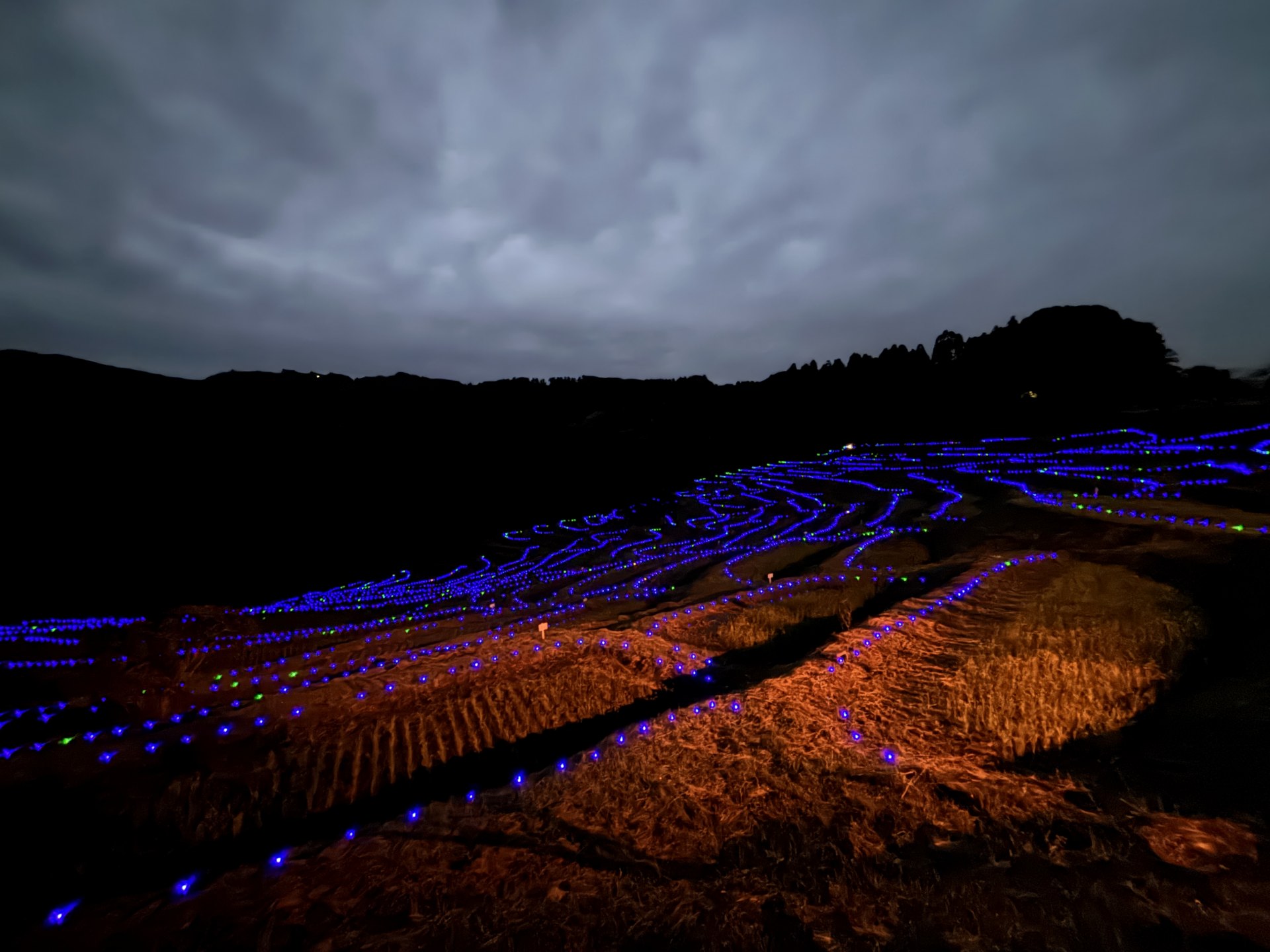 大山千枚田ではLEDトーチがすでに準備されていた。 iPhone 15 5.96 mm ISO2000 1/2 sec f/1.6