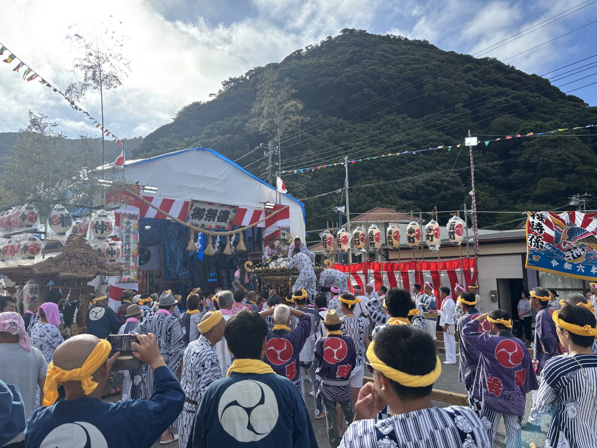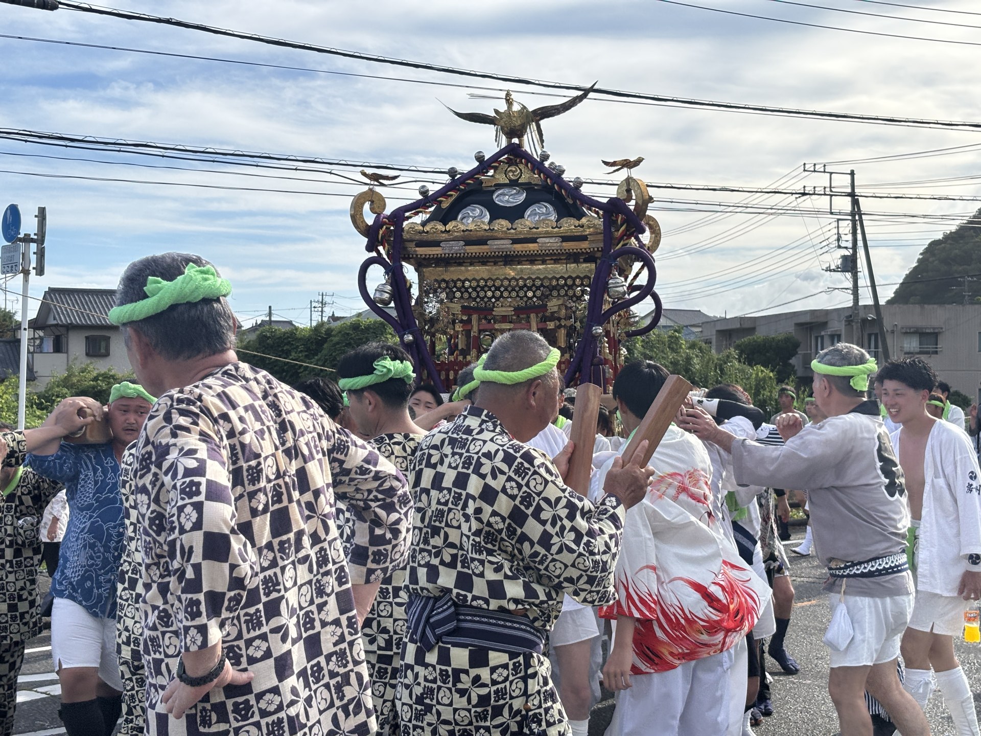 天王下を担がれる御神輿と宮本・城戸町のたたき台 iPhone 15 5.96 mm ISO500 1/25 sec f/1.6