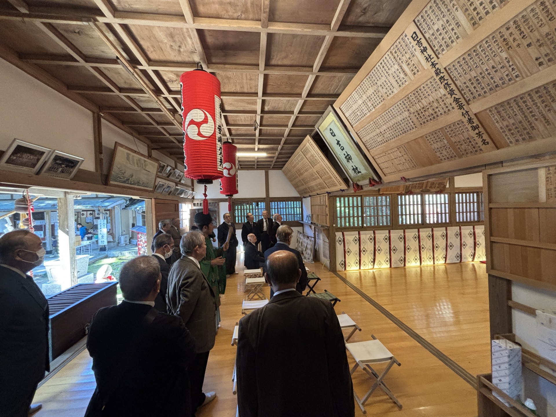今回お参りした神社は千葉県神道青年会の後輩でもある、野老くんが宮司として奉職している東金市の日吉神社。 コロナ禍前に何度かお参りしたことがあるが、文化財にも指定されている美しい杉並木の参道が厳かな神社である。 野老くんが宮司を引き継いでから、彼なりに手探りの中、がんばっているようすが境内からも見て取れた。 昇殿参拝の後、野老くんの計らいで社殿の中や参道に至るまで、普段なかなか見られない場所も含めて、丁寧に案内してくれた。 これも青年会で培われた御縁。 ありがたい。
